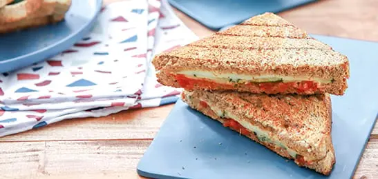 6. Bak de tosti lichtbruin en snijd schuin doormidden.