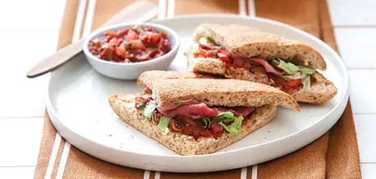 Beleg de punten met rosbief en ijsbergsla.