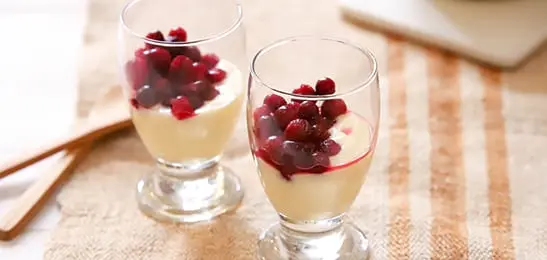 6. Verdeel de vanillevla over 2 schaaltjes en schep de cranberries er op.