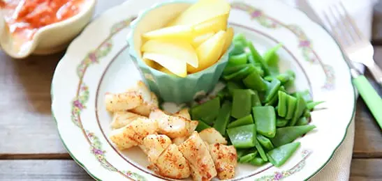 Recept van het Voedingscentrum: Vissticks met snijboontjes en aardappelen