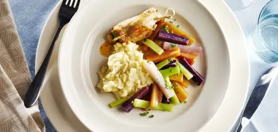 - Serveer de aardappelpuree en de salade bij de vleesrolletjes.