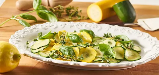 5. Breng de courgette op smaak met citroensap strooi de basilicum erboven.