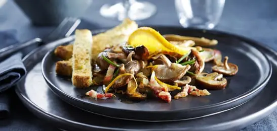 Warme paddenstoelensalade met sinaasappeldressing