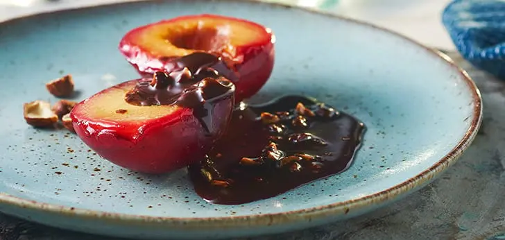 Vervang de pruimen door peren, nectarines of perziken. De hazelnoten en hazelnootpasta zijn te vervangen door andere noten(pasta).
