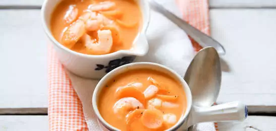 Wortel-crèmesoep met garnalen