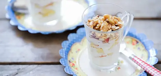 Recept van het Voedingscentrum: Yoghurt met nectarine en gebakken muesli