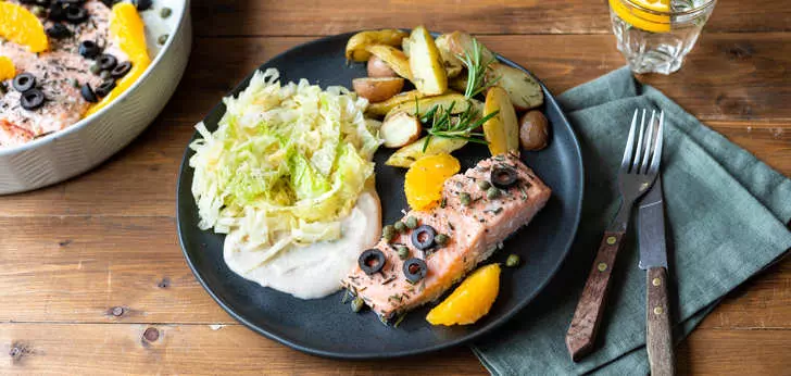 Recept van het Voedingscentrum: Zalm met sinaasappel en gewokte savooikool