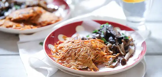 Recept van het Voedingscentrum: Zoete aardappelkoekjes met paddenstoelen